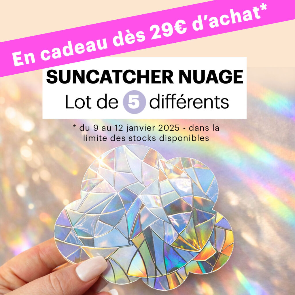 Pour fêter ça : j’ajoute un joli lot de 5 stickers attrape-soleils en forme de nuage dans les commandes de plus de 29€ !