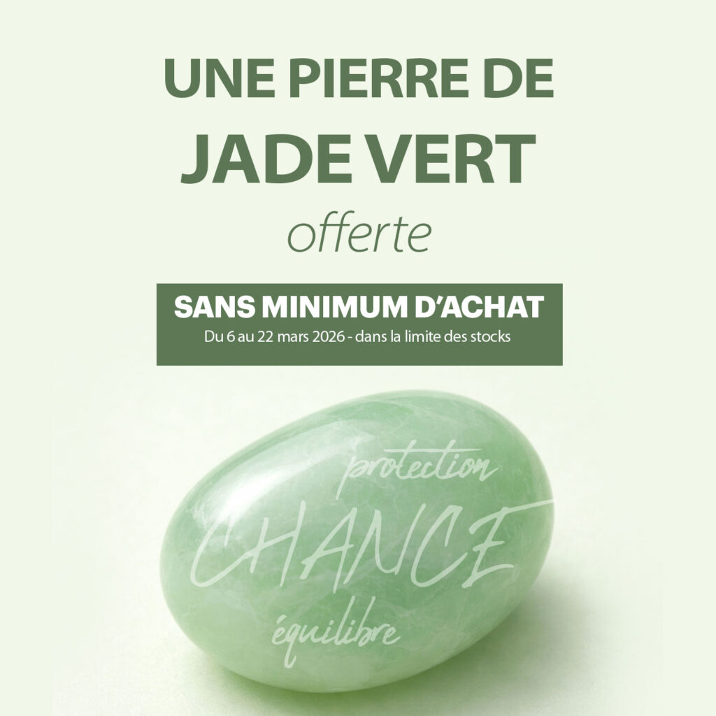 Gardez bien votre pierre de jade sur vous : poche, sac ou trousse ! On dit qu’il attire la chance et favorise les opportunités positives dans la vie. Il aide également à retrouver l’équilibre émotionnel et à apaiser l’esprit. Associé à la protection, le jade est souvent considéré comme un talisman contre les énergies négatives. Porter ou garder du jade près de soi est ainsi perçu comme un moyen d’apporter harmonie, sérénité et prospérité au quotidien. 🍀💚