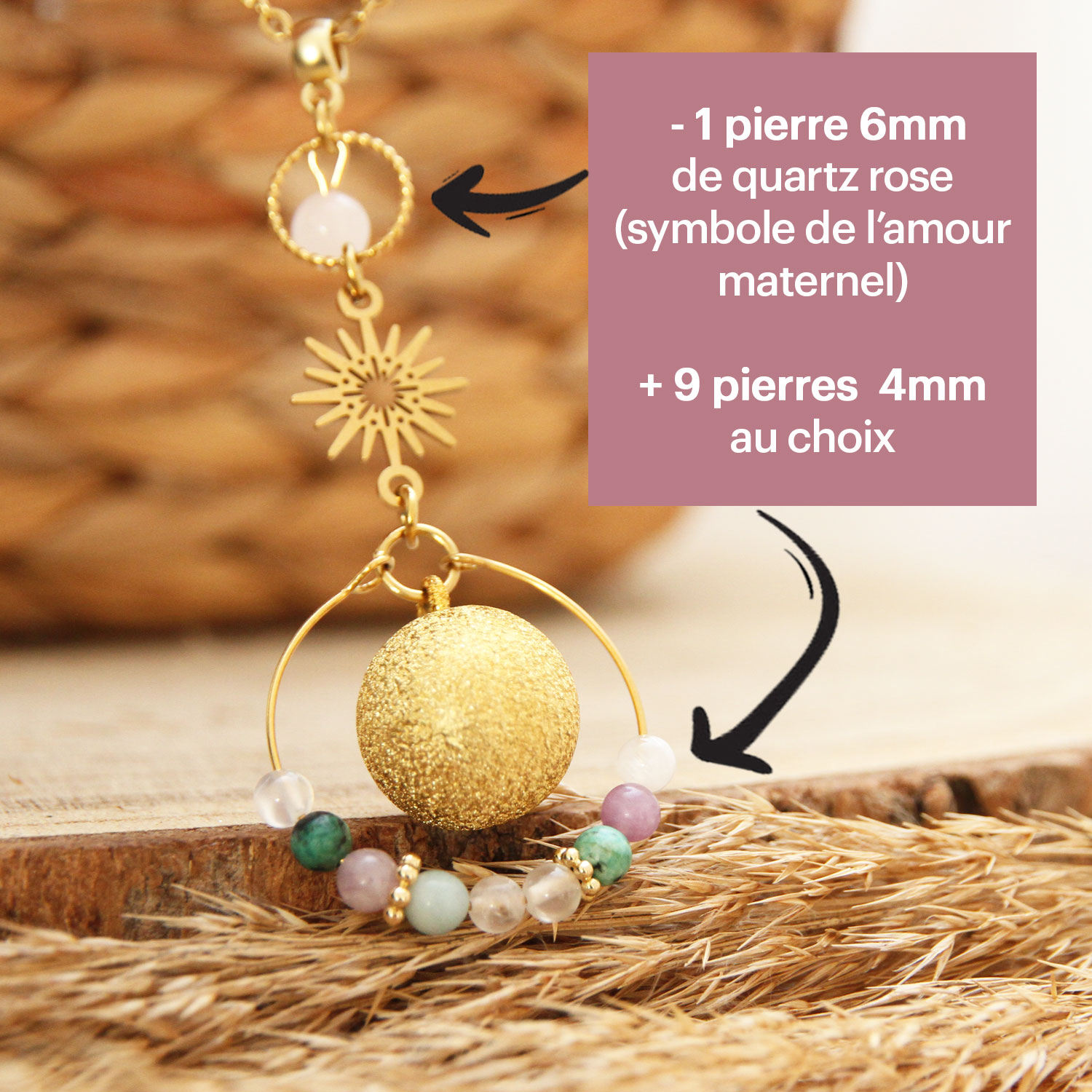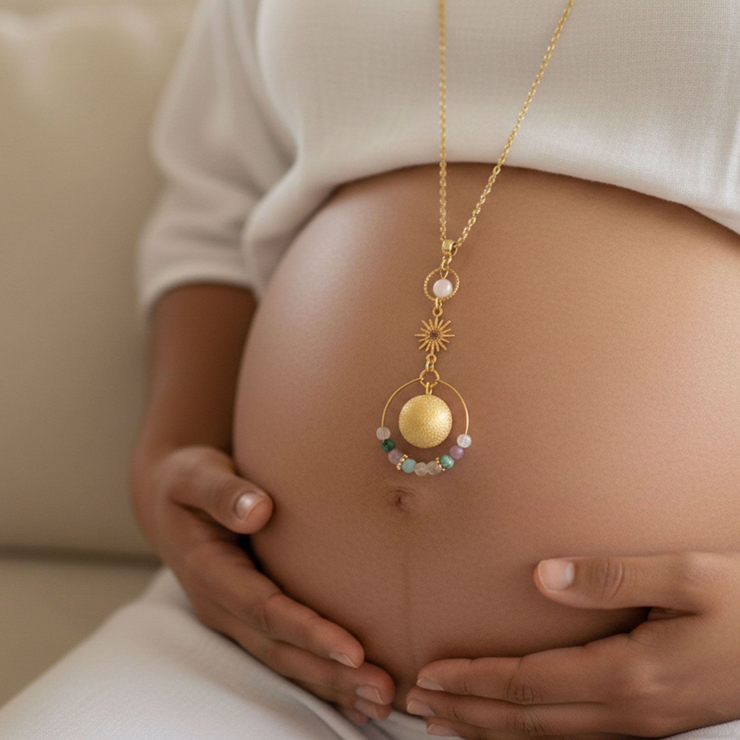 💛 L’idée : faire 9 vœux… un par mois, et porter ce bijou comme un petit rituel de maternité.