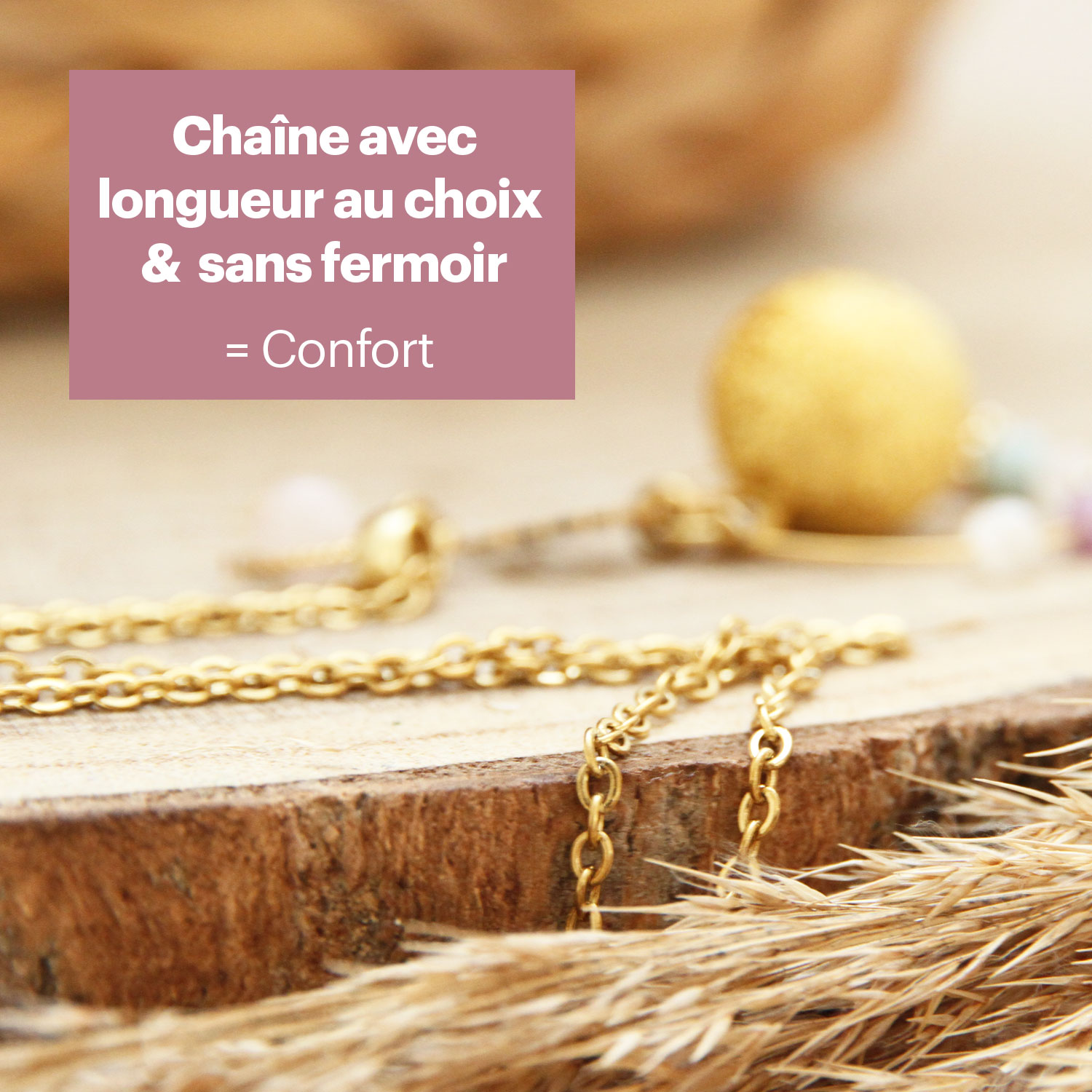 - Chaîne fine en acier inoxydable : maillons 3×2 mm