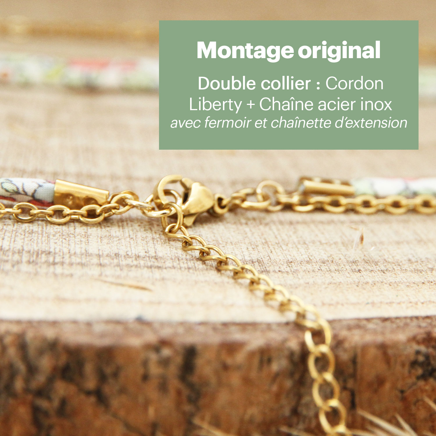 • Double collier : cordon spaghetti véritable Liberty of London + chaîne acier inoxydable