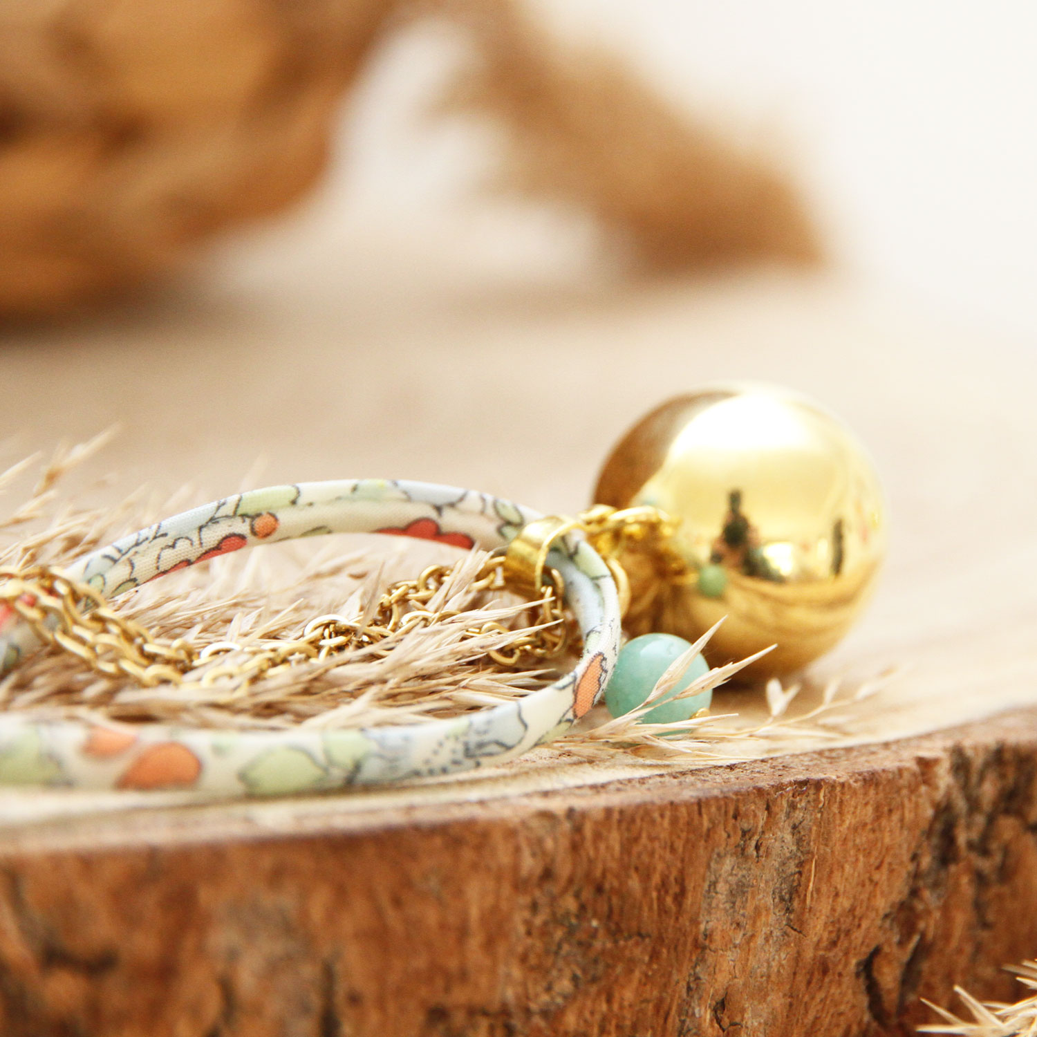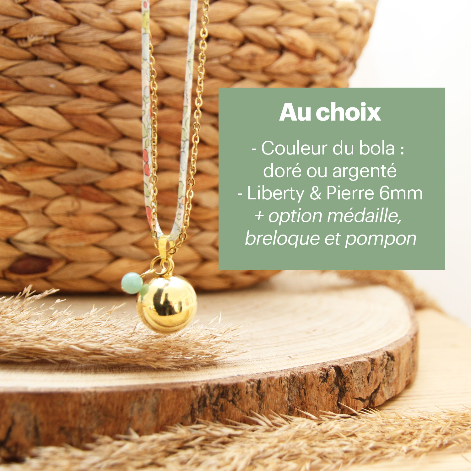 À chaque pas, son tintement léger crée une mélodie apaisante, un petit rituel sonore qui rassure bébé, jour après jour, comme un lien tendre entre vous deux ✨ Pensé comme un bijou de maternité précieux, ce bola avec cordon Liberty est entièrement réalisé sur mesure, selon vos envies : couleur, cordon, pierre naturelle, options… tout est personnalisable pour créer le bola qui vous ressemble.