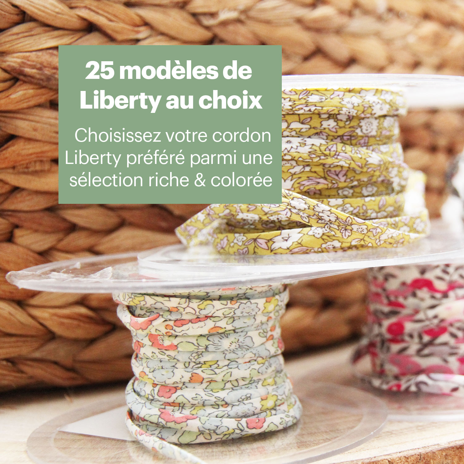 • un cordon spaghetti 4mm en véritable Liberty of London (à choisir parmi 25 modèles différents)