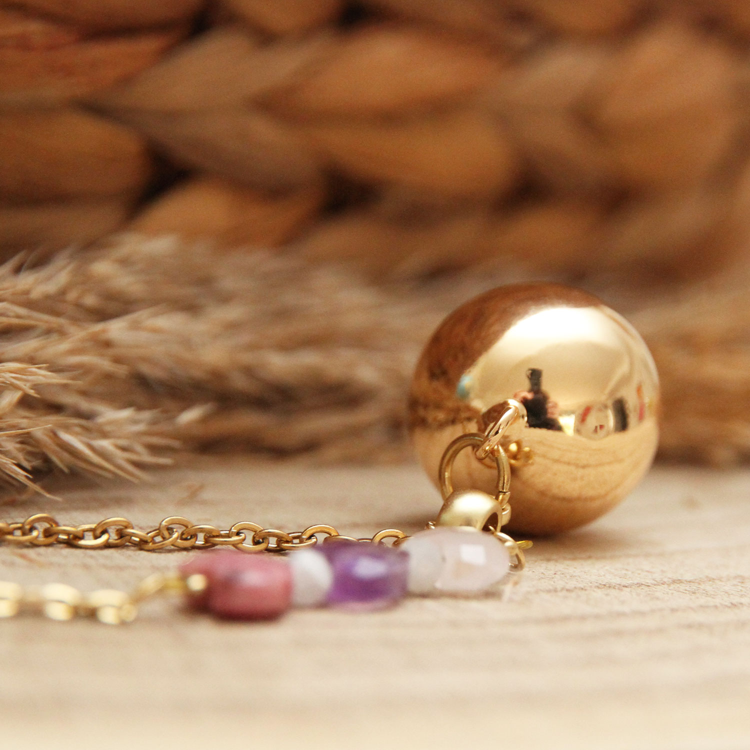 💎Les pierres naturelles de ce bola de grossesse vont vous transmettre de belles énergies pendant cette période merveilleuse. Chaque pierre a ses propres bienfaits, voici celles que j’ai choisi pour ce bijou :