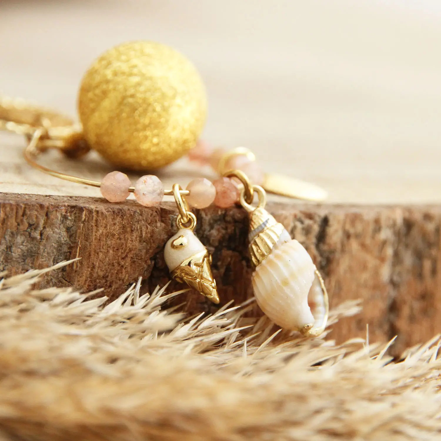 Bola de grossesse coquillage – Pierre de soleil & breloques estivales
