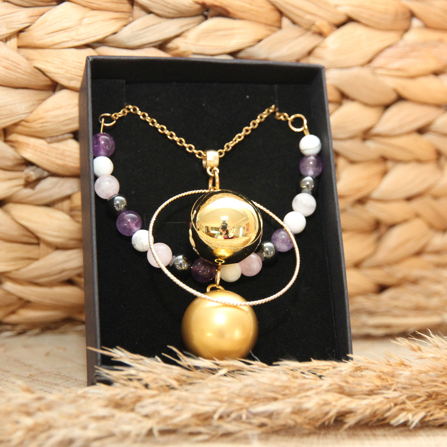 Autre avantage de ce bola pour grossesse gémellaire : le fait de pouvoir choisir les pierres naturelles qui vont composer l’un des collier du bijou.