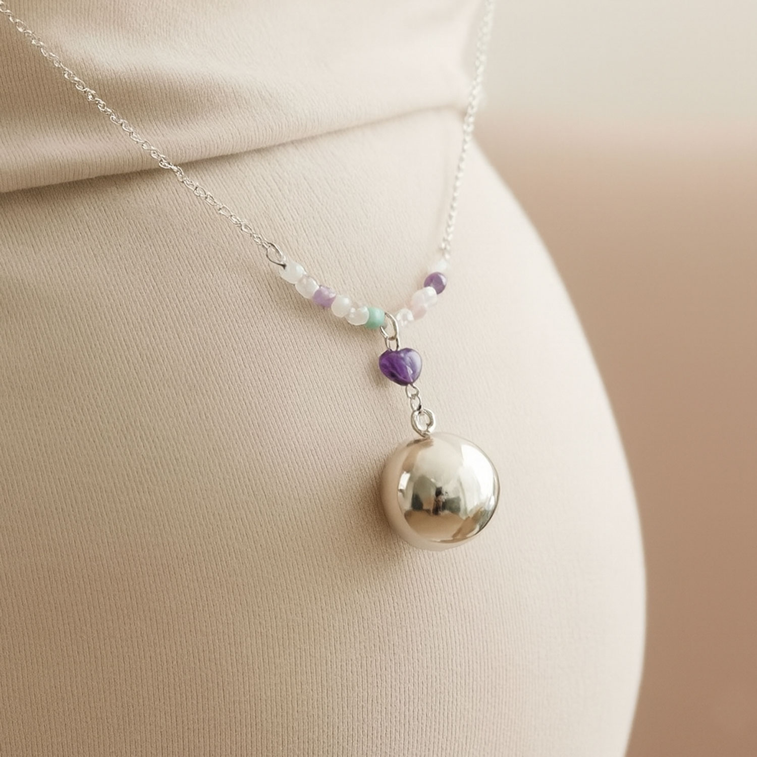 L’améthyste est considérée comme une pierre de douceur et de sérénité, idéale pour accompagner une future maman tout au long de sa grossesse. On lui attribue des vertus d’apaisement émotionnel, aidant à calmer le mental, atténuer le stress et favoriser un sommeil plus tranquille. Pour le bébé, elle symbolise un cocon énergétique rassurant, une bulle de tendresse qui l’entoure dès les premiers mois. Bien sûr, ces bienfaits relèvent des traditions de la lithothérapie et ne remplacent pas un suivi médical, mais elles ajoutent une jolie dimension symbolique à votre bola. 💜