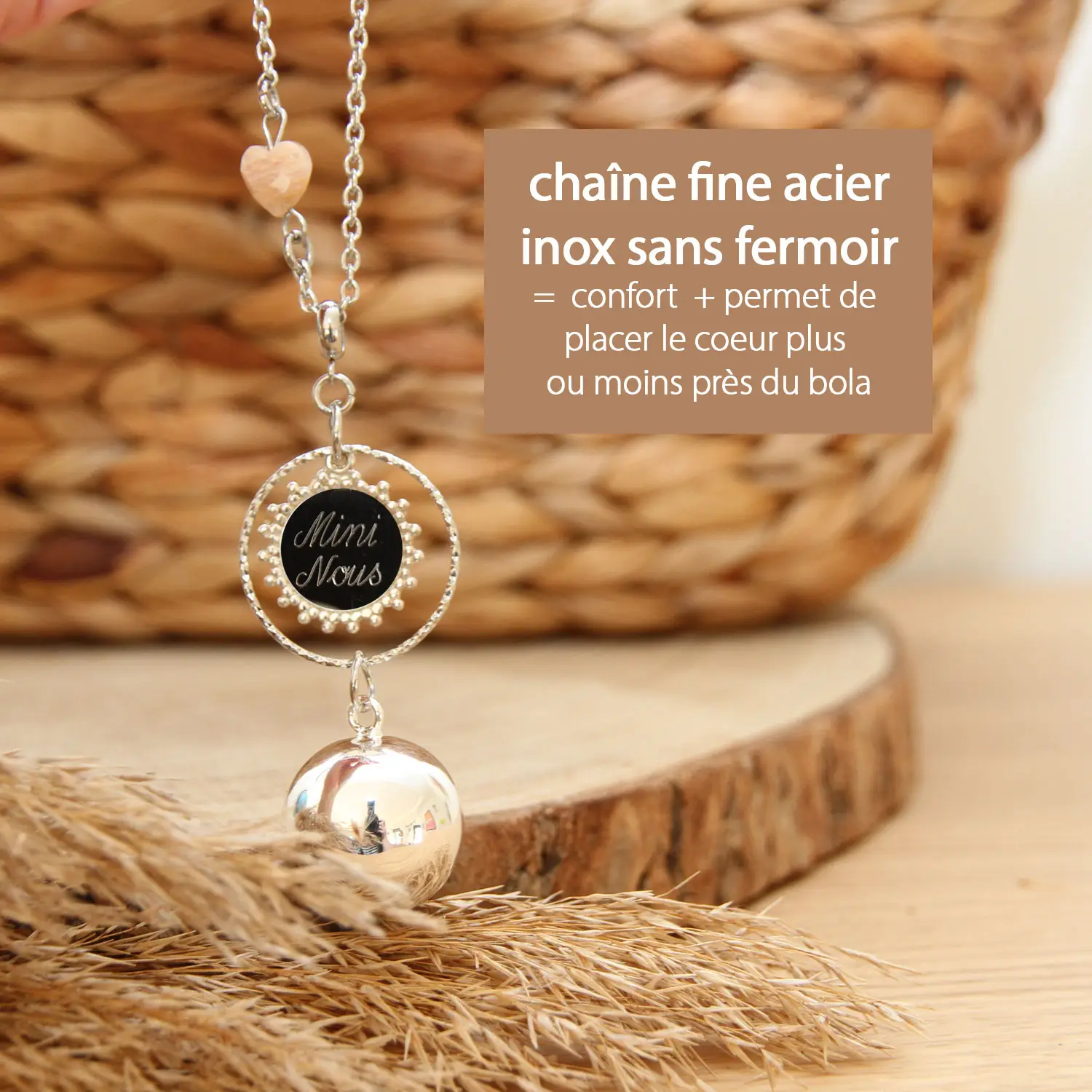 💡 Sans fermoir, la chaîne offre un confort optimal et vous permet de positionner la perle cœur plus ou moins près du bola, selon vos envies.
