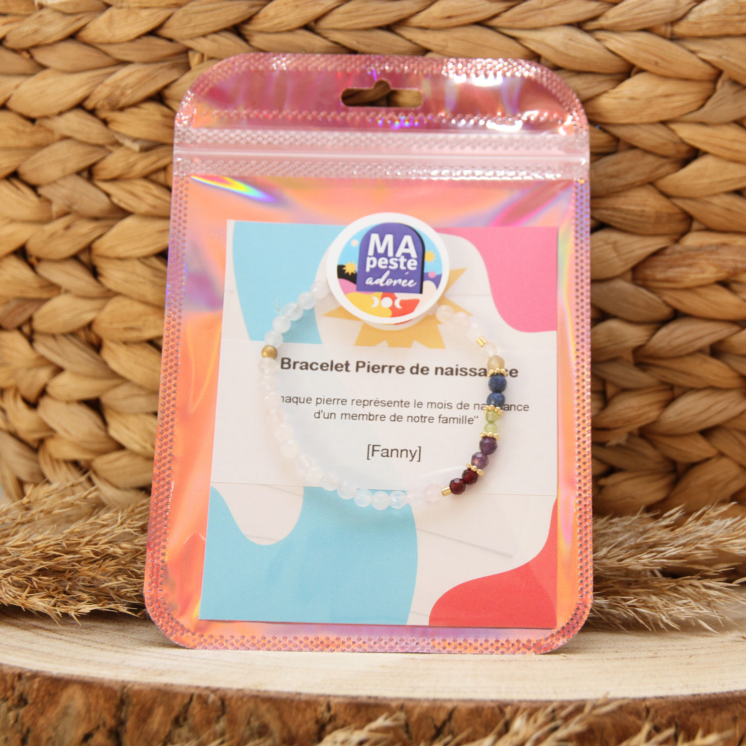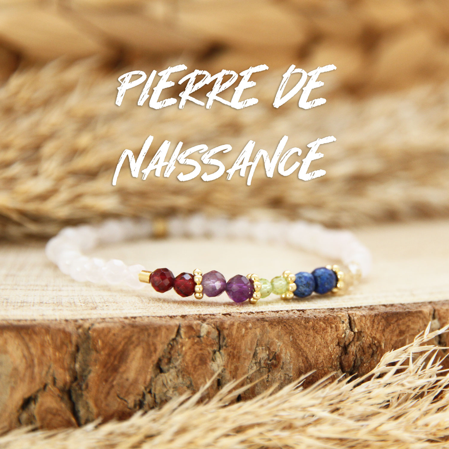 Le bracelet lithothérapie élastique Pierre de naissance est un bracelet avec des pierres naturelles qui symbolisent votre mois de naissance ou alors les mois de naissance de chaque membre de la famille.