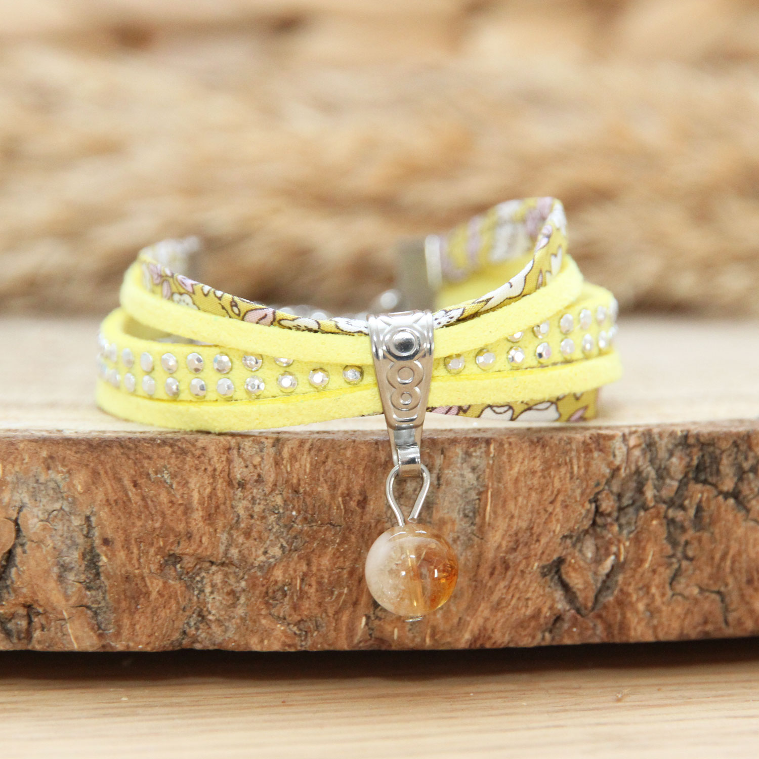 - Pierre naturelle de citrine (8 mm) montée sur une attache breloque au centre du bracelet