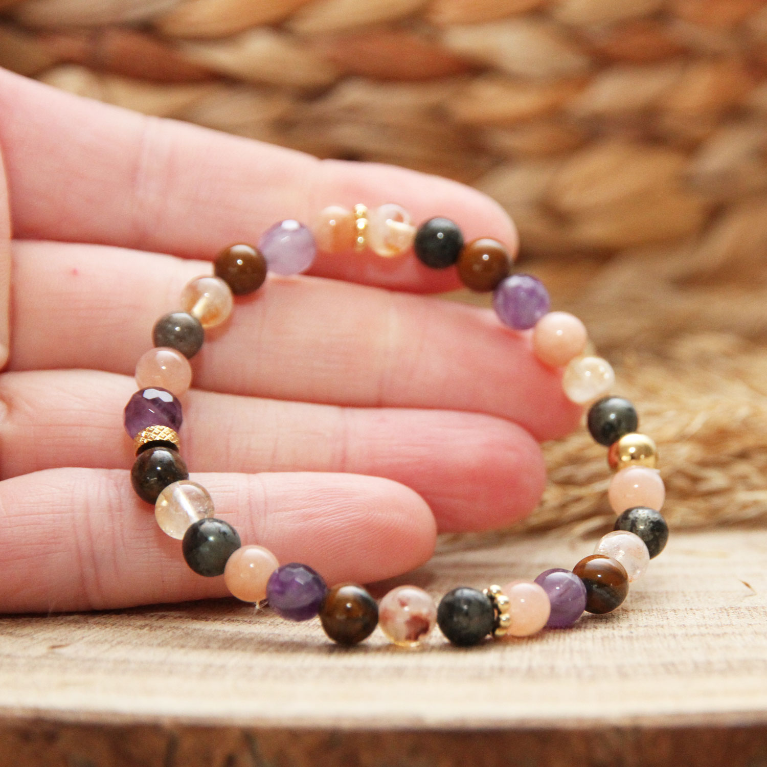 Bracelet femme Abondance & Prospérité – Confiance et Énergie Positive : un bijou en pierres naturelles de 6 mm, pensé pour cultiver l’abondance et la prospérité.