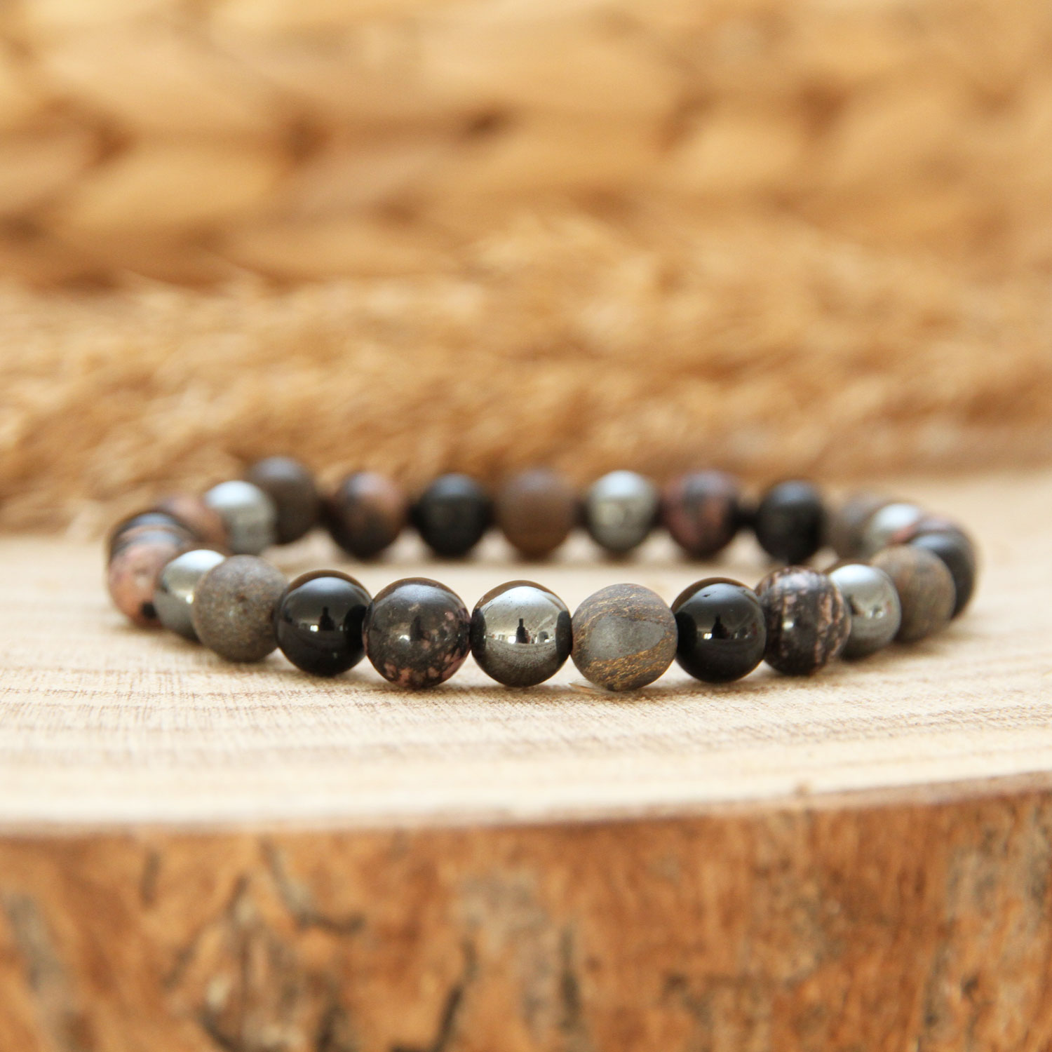 Bracelet homme en pierres naturelles conçu pour l’ancrage et la stabilité émotionnelle. Un bijou sobre et puissant pour rester centré, calme et aligné au quotidien.
