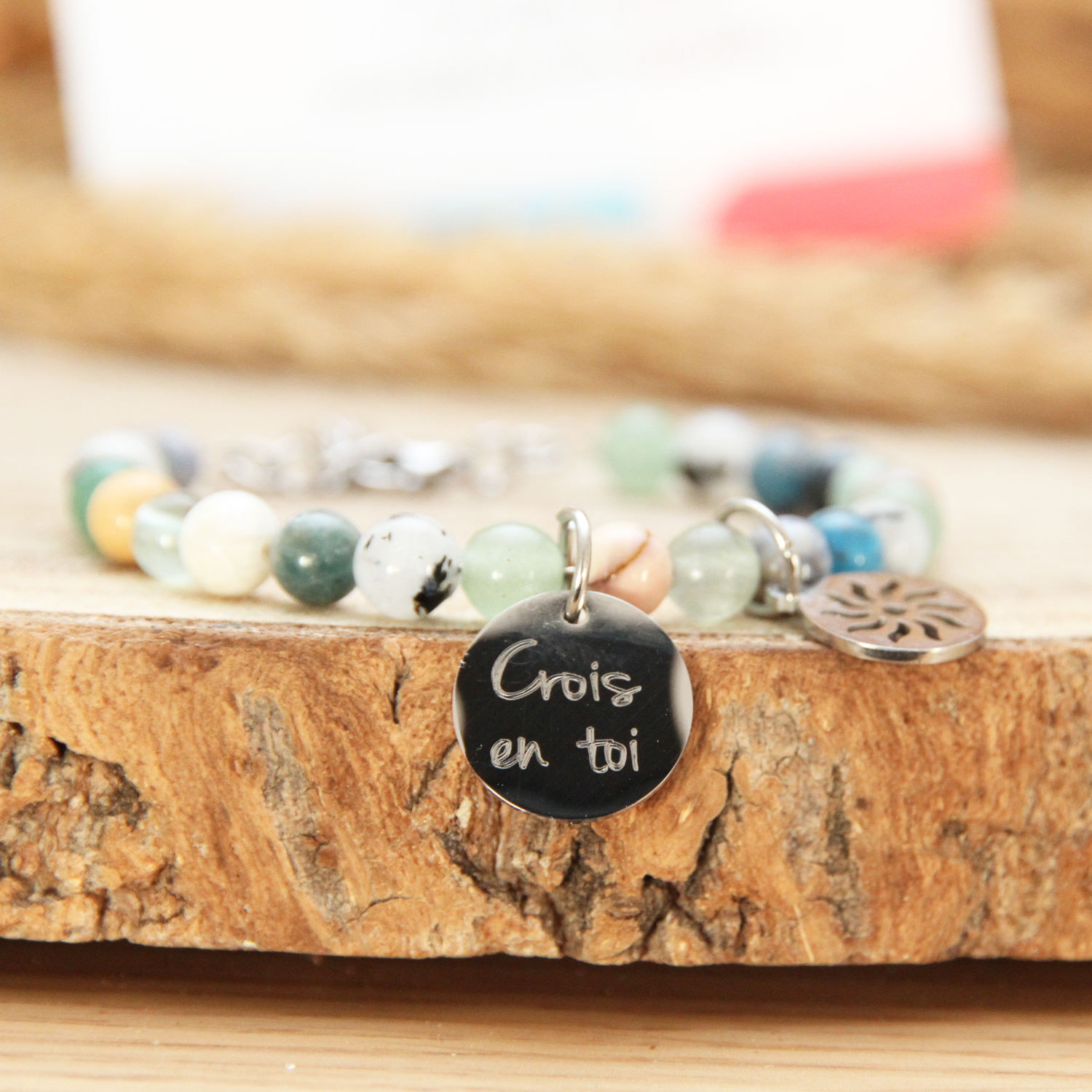Note importante : la lithothérapie relève d’une approche traditionnelle autour des pierres. Chacun est libre d’y adhérer ou non. Si un bracelet peut soutenir un mieux-être, il ne remplace en aucun cas un avis ou un suivi médical.