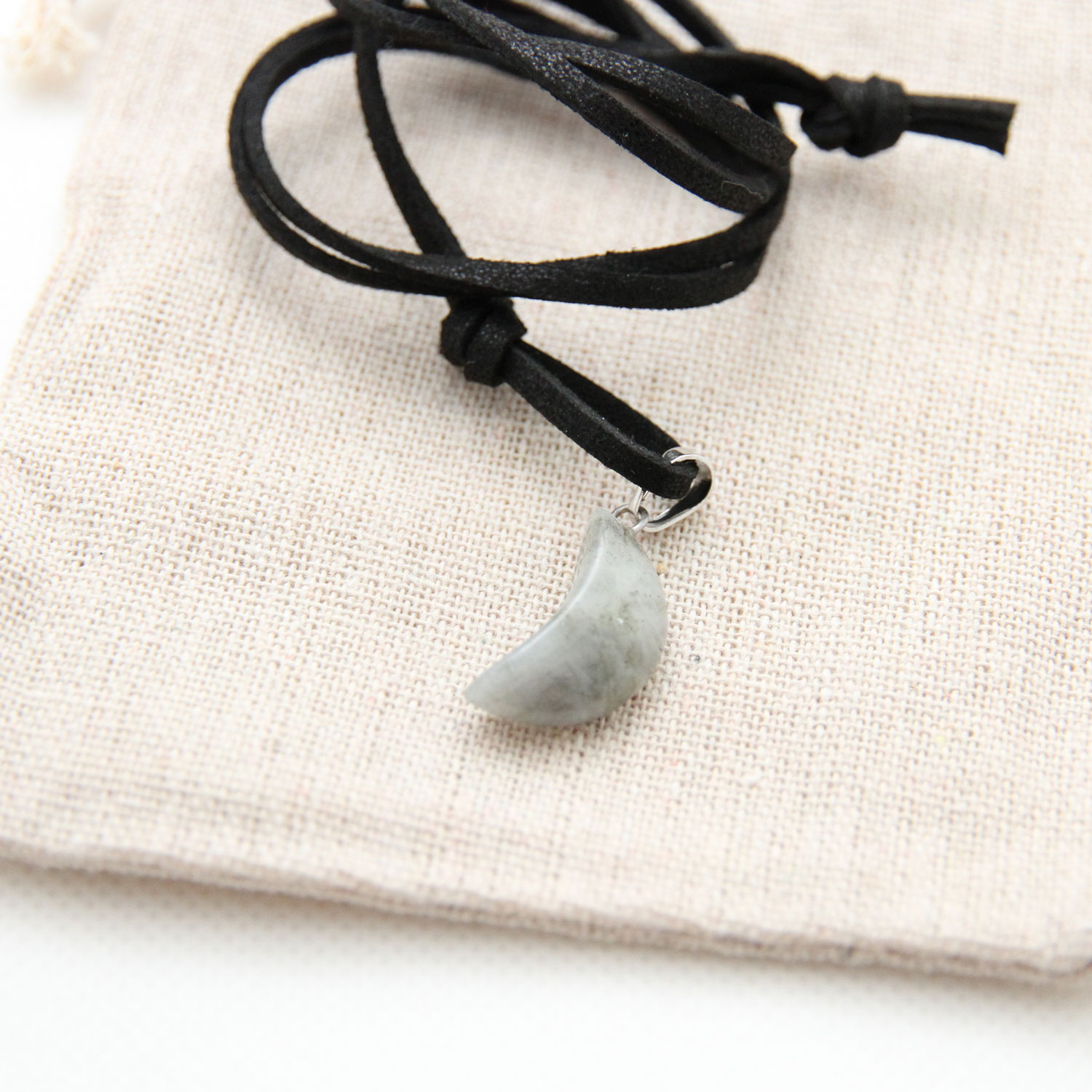 Avec sa forme de lune originale, ce bijou est vraiment spécial et « magique ». Le collier est livré avec un petit livret qui explique les bienfaits de la Labradorite.
