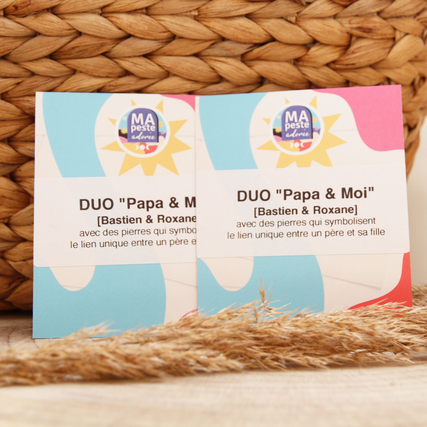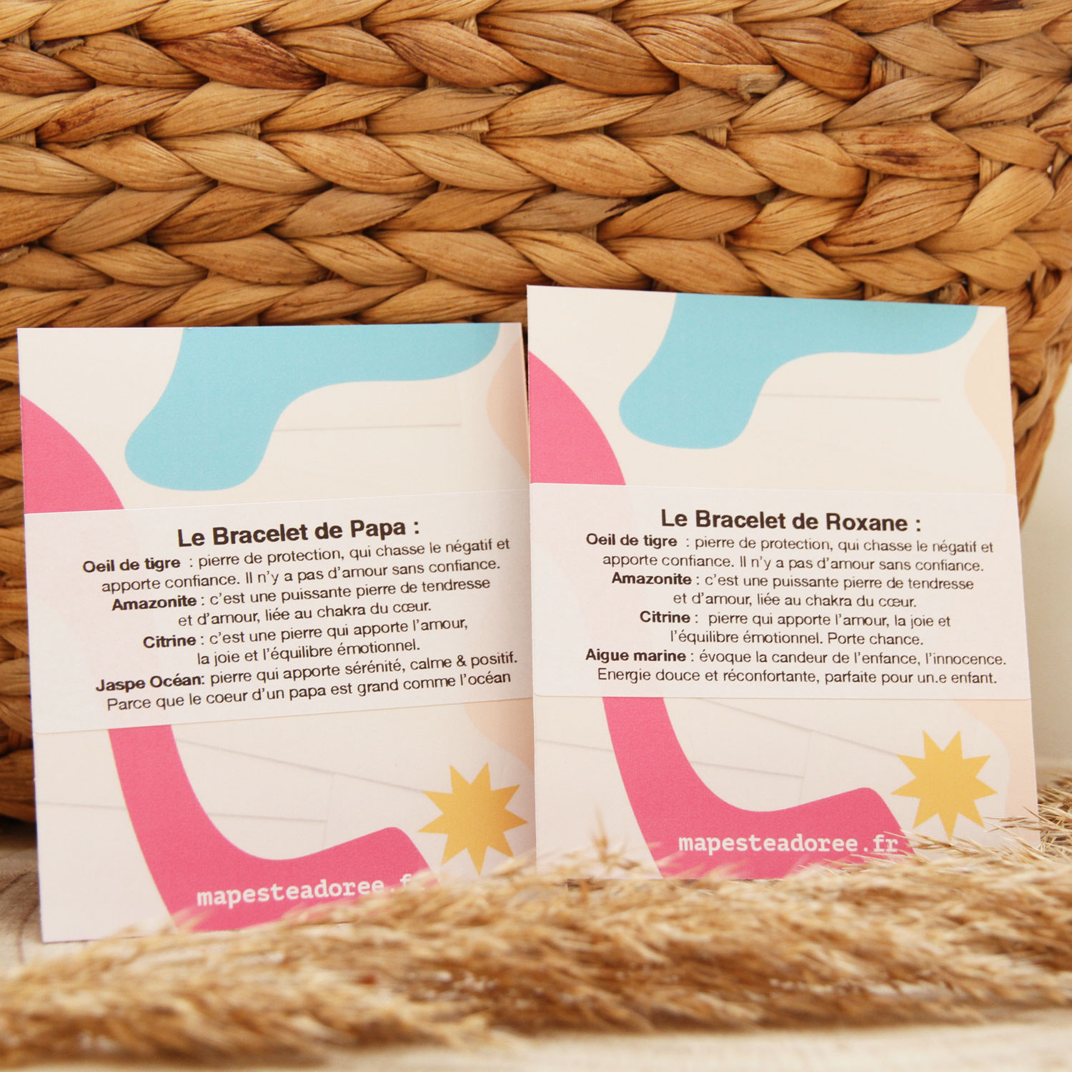 C’est une belle idée cadeau pour la fête des pères, mais aussi pour un anniversaire ou toute autre occasion. Symbole du lien d’amour fort entre un papa et son garçon ou sa fille, ce duo de bracelets en pierre est vraiment spécial.
