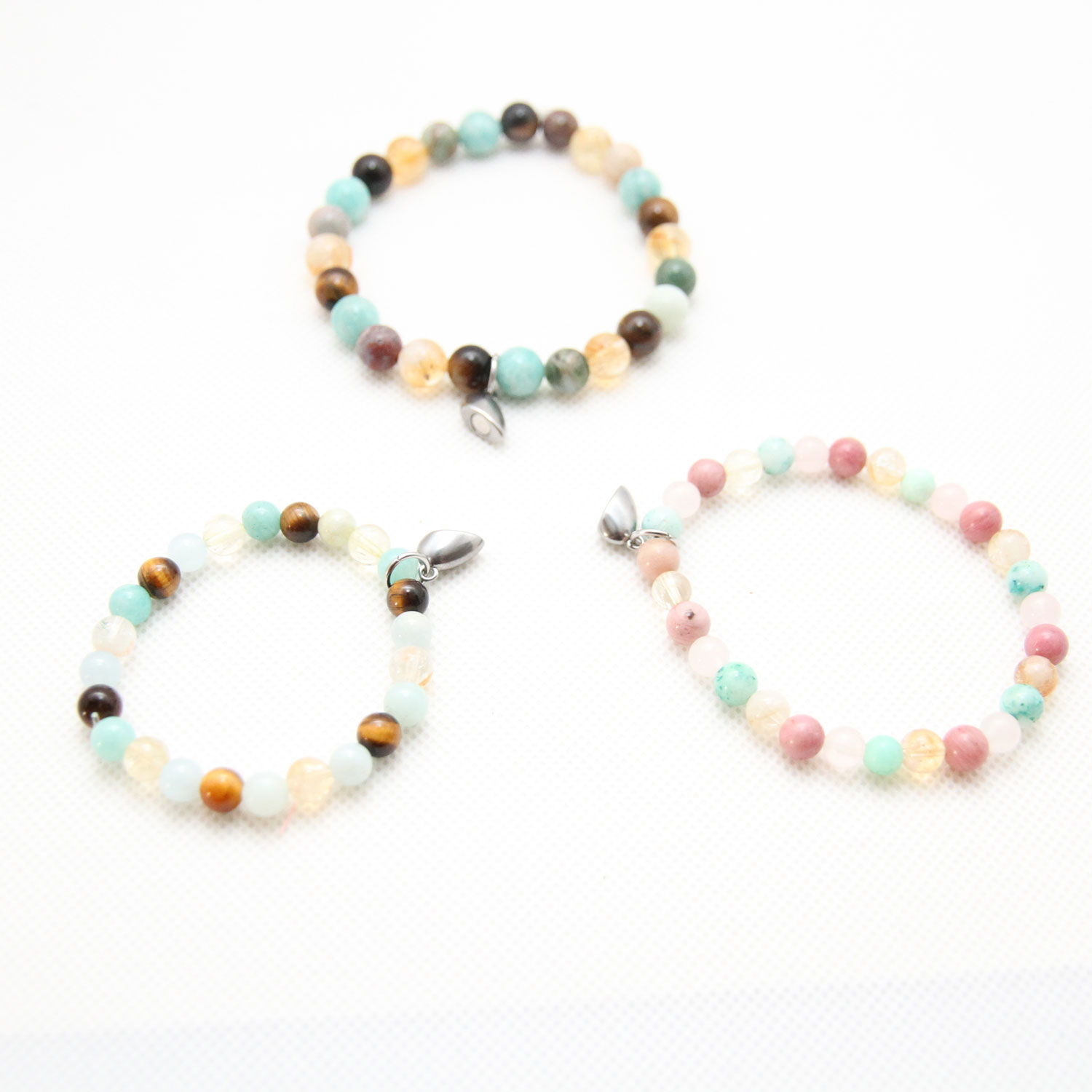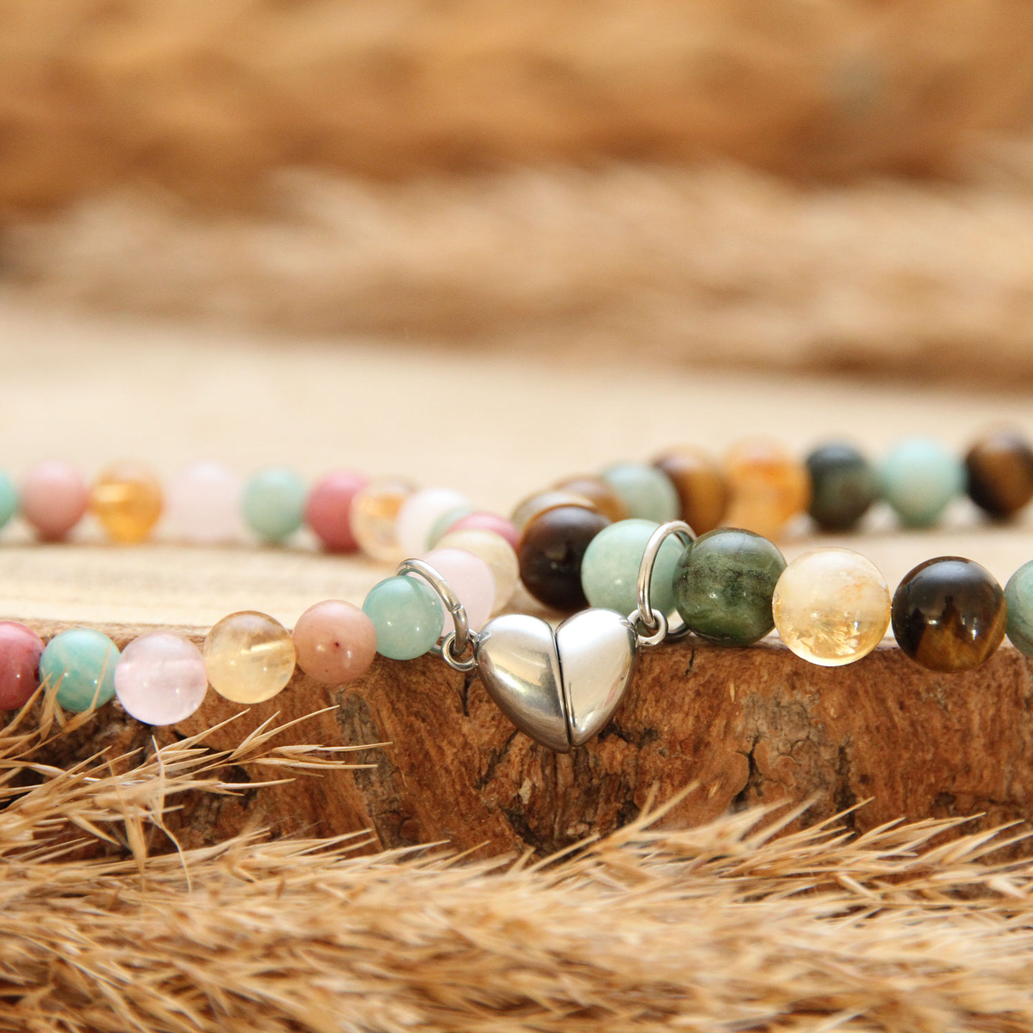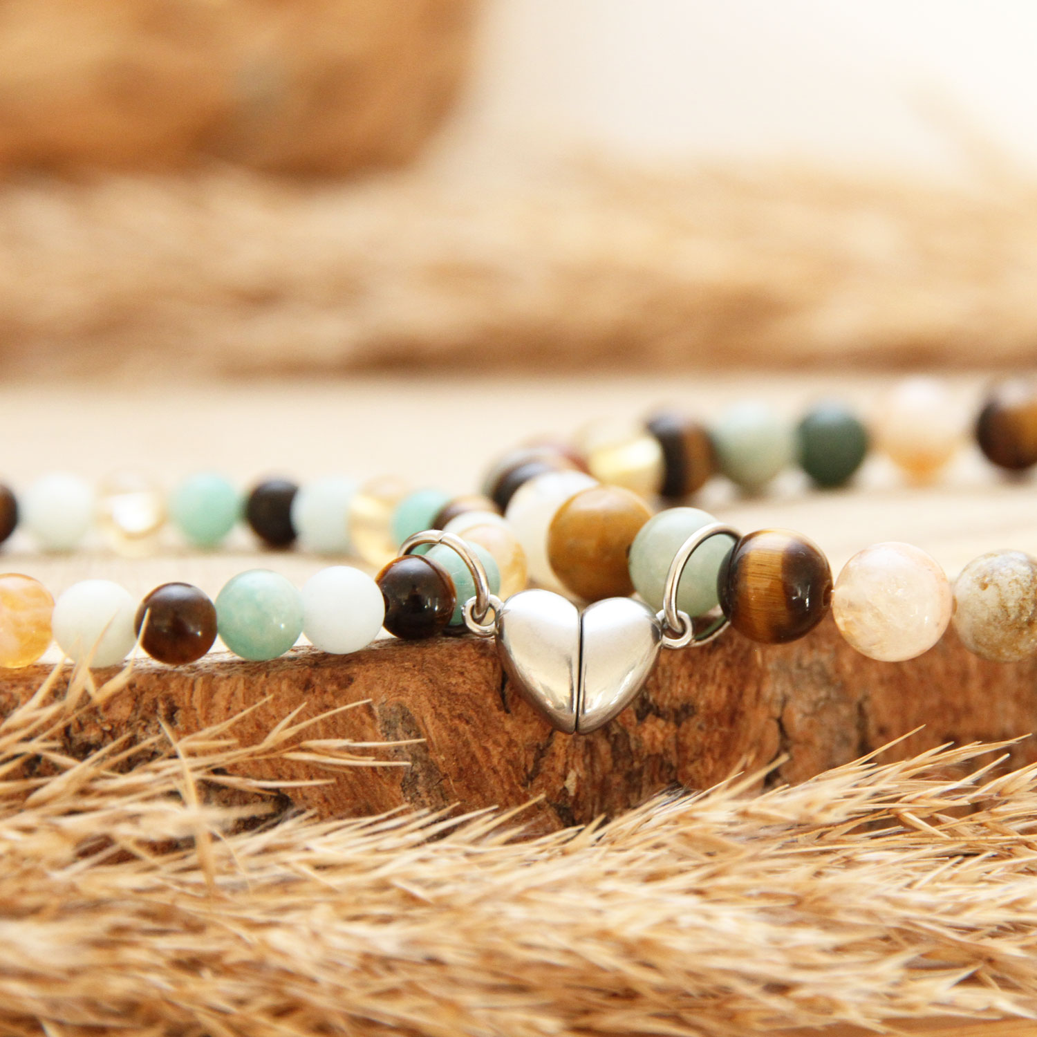 Une parure lithothérapie père – enfant avec coeur magnétique