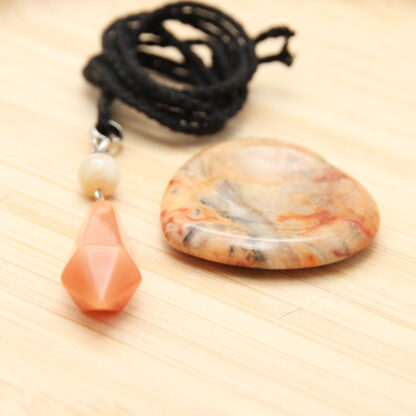 💎 La pierre d’apaisement de ce kit est une agate orange en forme de coeur, diamètre 40mm environ.