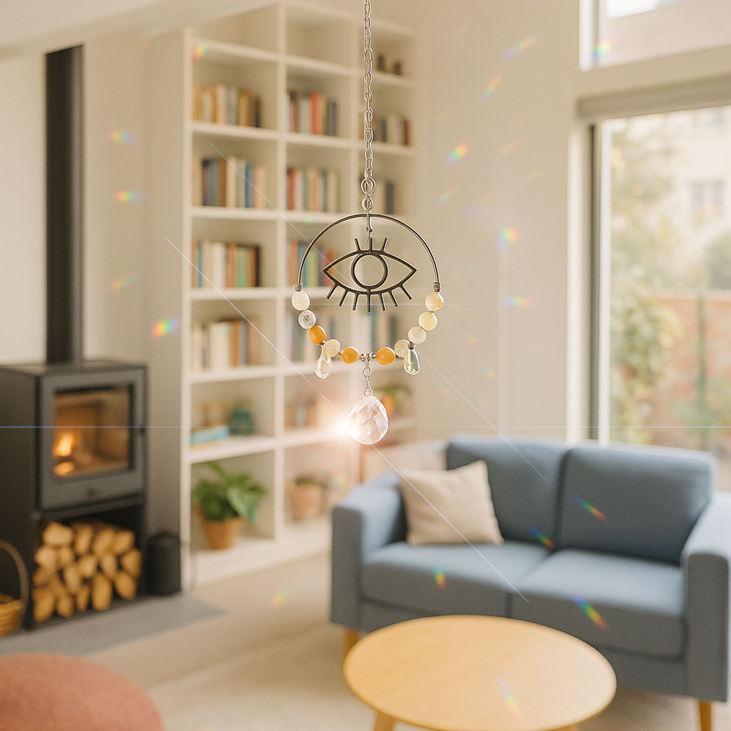 Un suncatcher ( ou attrape soleil) est un capteur de lumière qui agit comme un petit talisman pour votre espace : suspendu près d’une fenêtre, il capte les rayons du soleil et les diffuse en éclats irisés, créant une atmosphère harmonieuse et vibrante. Associé aux pierres naturelles, il devient un véritable outil énergétique : chaque cristal choisi rayonne sa propre fréquence, contribuant à purifier, apaiser ou dynamiser le lieu, tout en favorisant la circulation des bonnes énergies selon les principes du feng shui.