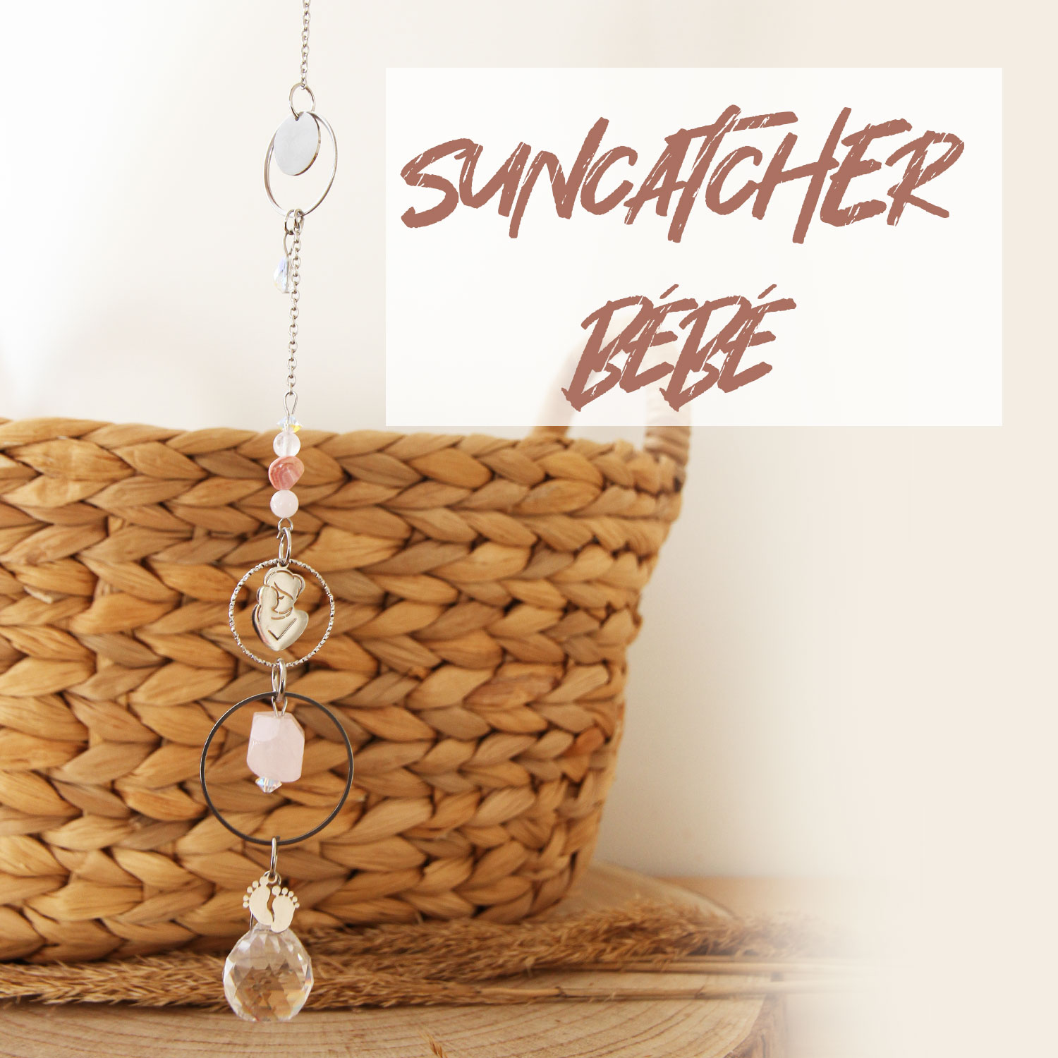 Un suncatcher (ou attrape-soleil) est un capteur de lumière qui agit comme un petit talisman pour la chambre de bébé : suspendu près d’une fenêtre, il capte les rayons du soleil et les transforme en éclats arc-en-ciel, créant un cocon doux, lumineux et rassurant.