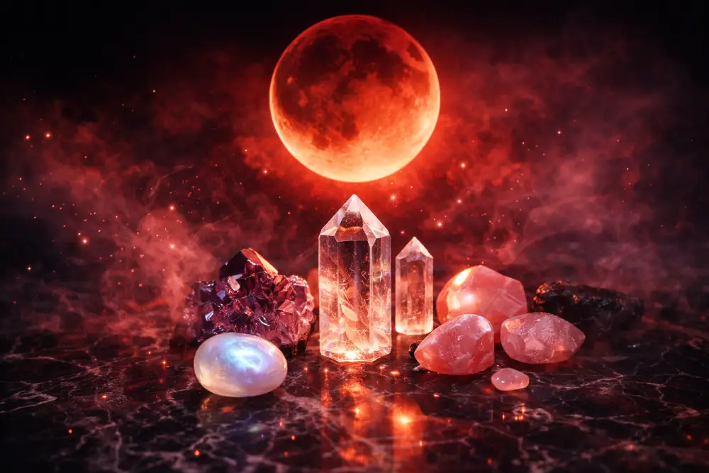 Pendant cet alignement cosmique rare, vos cristaux deviennent des conducteurs d’intention amplifiés. Une simple pierre de rose, placée sous cette lune rouge, verra ses propriétés liées à l’amour et à l’auto-compassion décuplées.